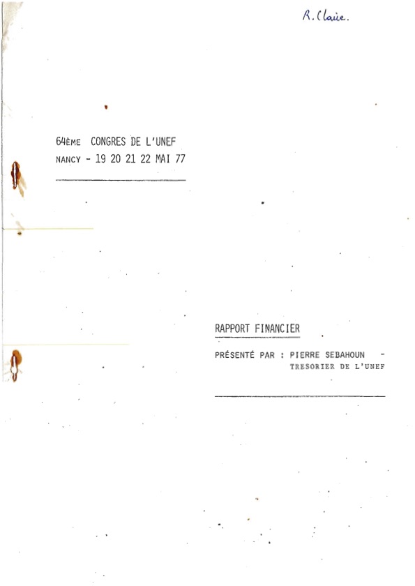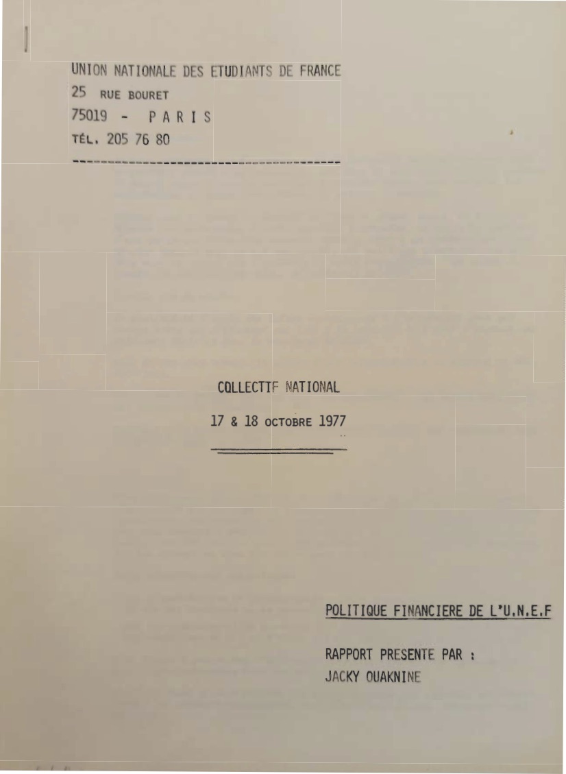 ![]() Le rapport financier pressentˇ par Jacky Ouaknine au CN des 17 et 18 octobre 1977 AD Val de Marne - 120j |
