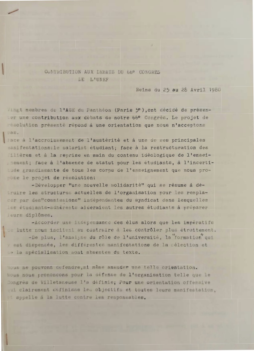 ![]() Contribution de vingt membres de l'AGE du Panthon (Paris I) AD Val de Marne - 120j |