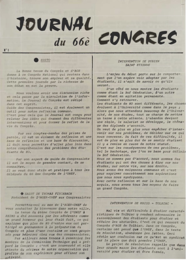 ![]() Le journal du congrs, numro 1 |
