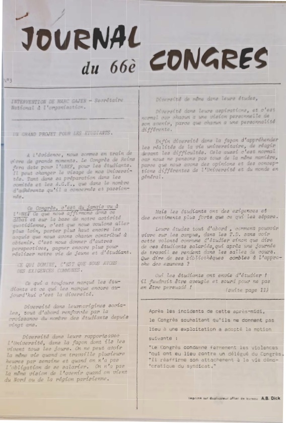 ![]() Le projet de rsolution, prsent par un ditorial de Didier Seban dans UNEF-Inform de fvrier AD Val de Marne - 120j |
