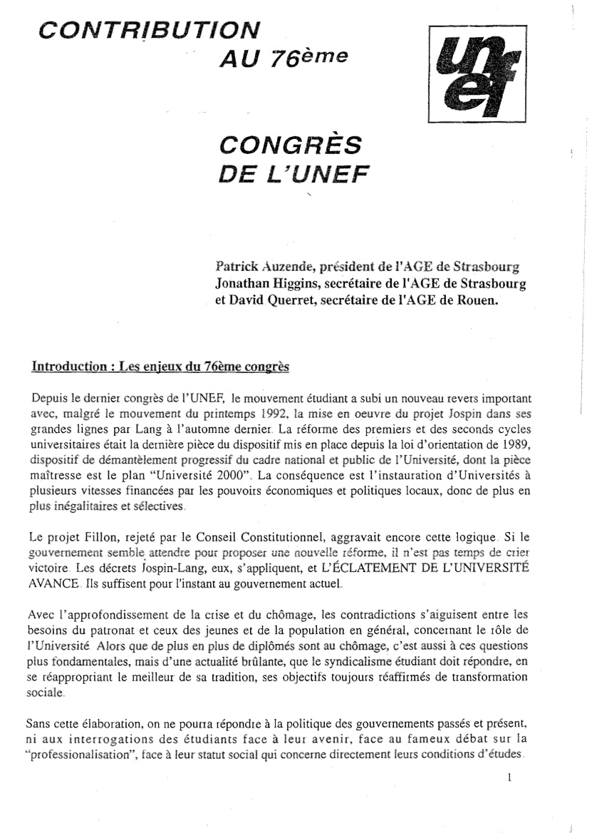 L'exclusion de l'AGEN (Nanterre) ![]() Le rapport de la commission de contrle, prsent par Olivier Meer |