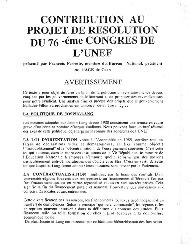 au CN du 4 ianvier 1994 ![]() Protestation ce sujet de responsables de plusieurs AGE, l'initiative de ceux de Caen |