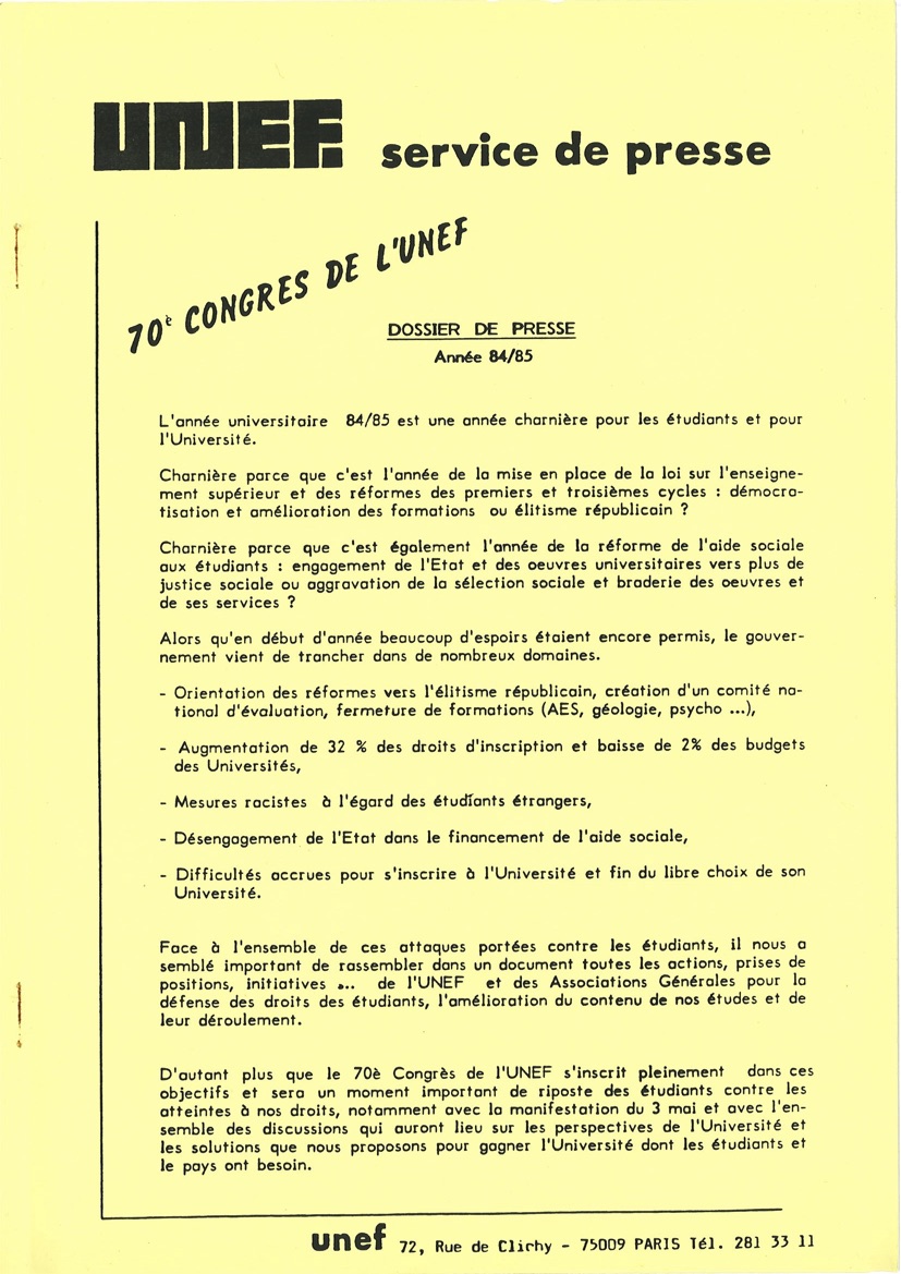 70e congrès, Colombes, 2 au 5 mai 1985