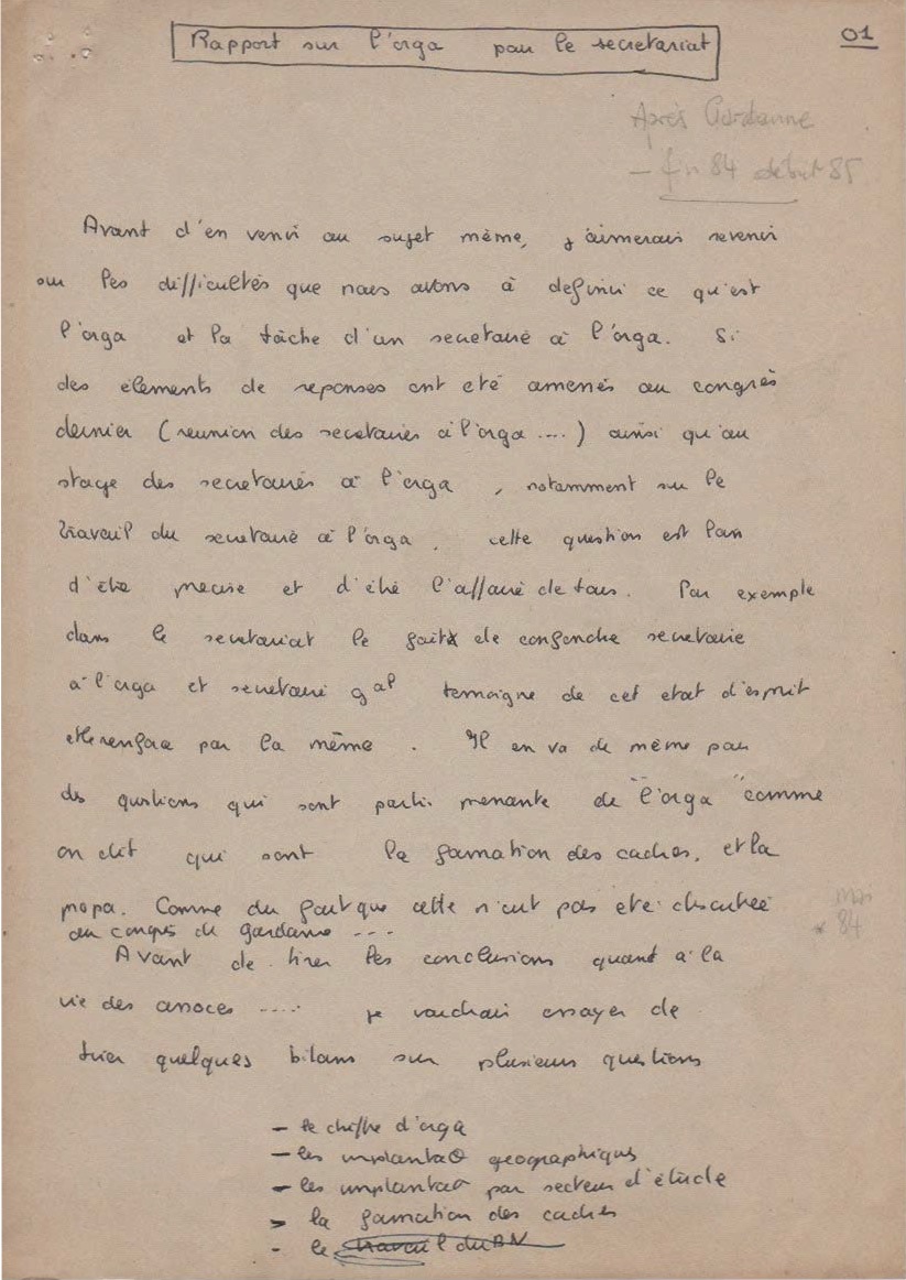 Le rapport introductif du Collectif national des 11 et 12 janvier 1986, prsent par Patrice Leclerc, alors trsorier.
