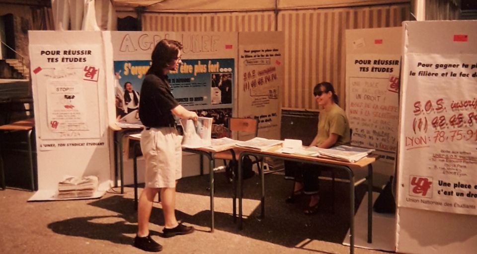 ![]() Une photo du stand UNEF pour les chaines d'inscription ˆ Lyon II en 1992 |